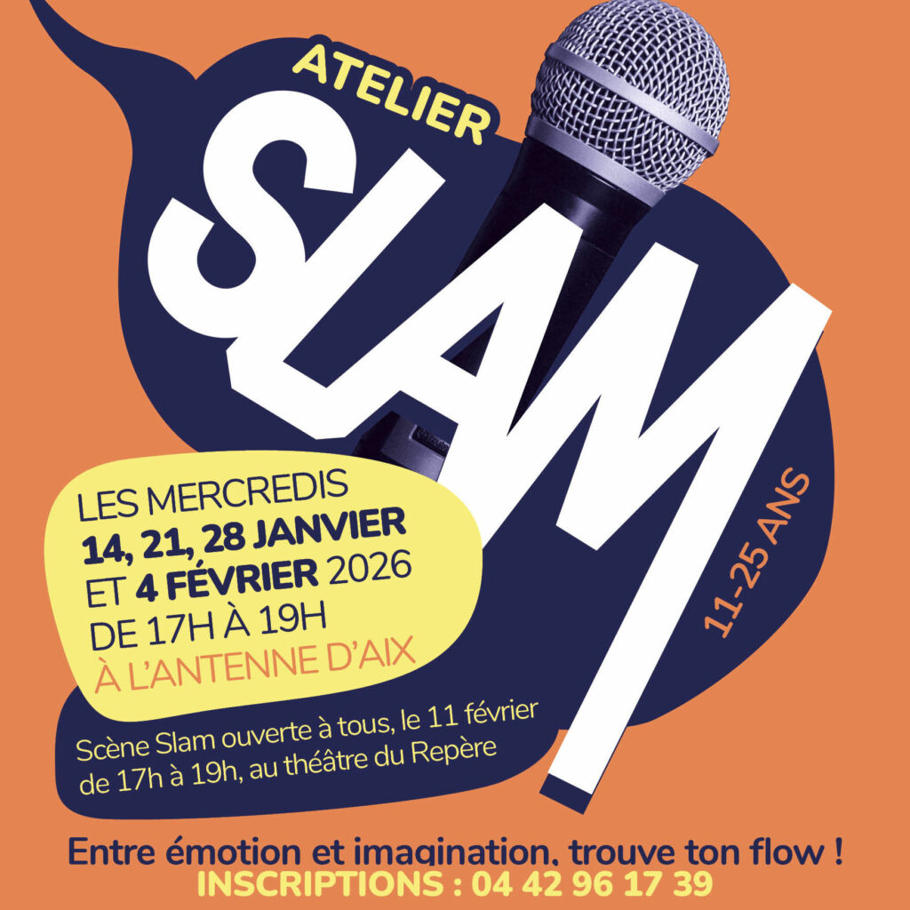 Entre émotion et imagination, trouve ton flow ! Les mercredis 14, 21, 28 janvier et 4 Février 2026 De 17h à 19h, à l’antenne d’Aix Scène Slam ouverte à tous, le 11 février de 17h à 19h, au théâtre du Repère. Ateliers co-animés par Emilie Jauffret-Hanifi, Art-thérapeute et Charly Buchris, animateur d’atelier slam et slameur. INSCRIPTIONS […]