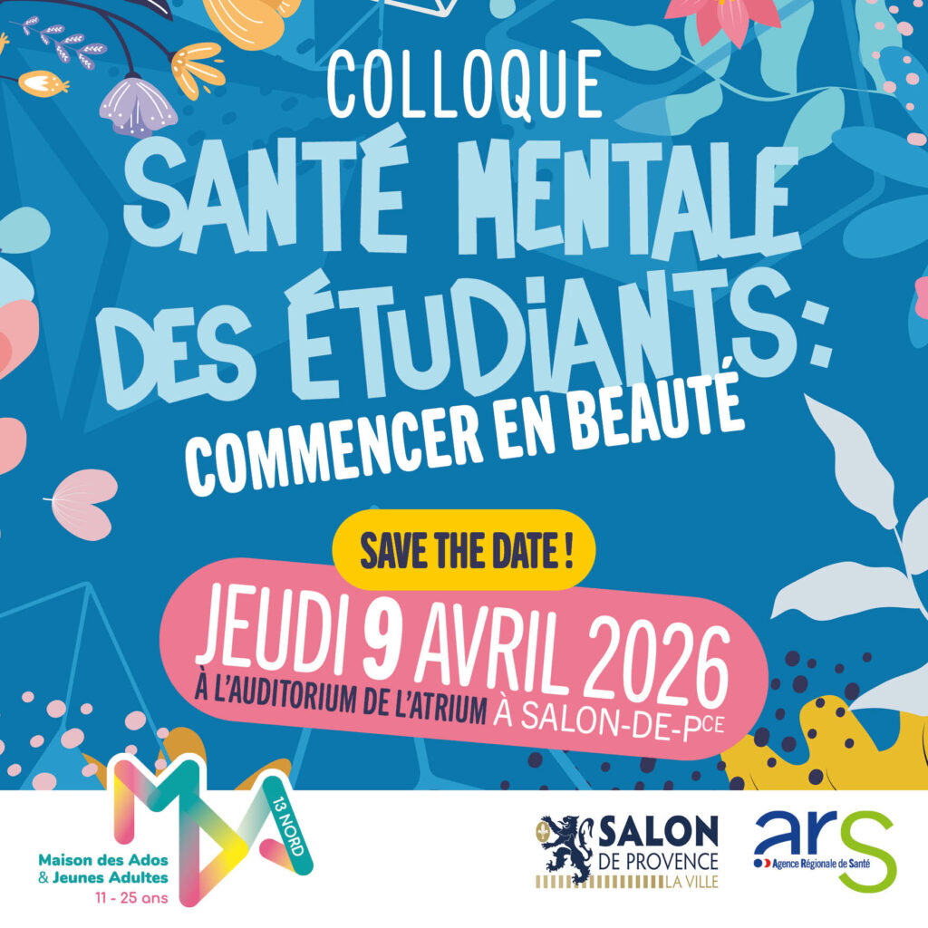 Notre prochain colloque GRATUIT, sur le thème « Santé mentale des étudiants : Commencer en beauté », aura lieu jeudi 9 avril 2026, à l’auditorium de l’Atrium, à Salon-de-Provence. La santé mentale, à l’origine, était pensée autour de la notion de « prendre soin ». Ce colloque propose d’explorer des alternatives aux accompagnements et thérapies conventionnelles, adaptées […]